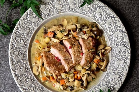 2024.9.14お料理教室 ローストポーク イチジクの赤ワインソース/秋の葡萄と貝のサラダ仕立て